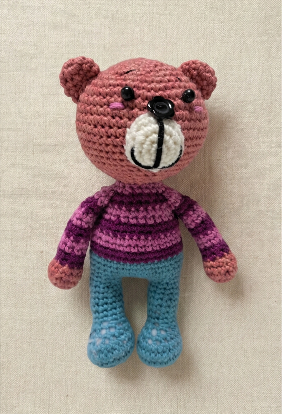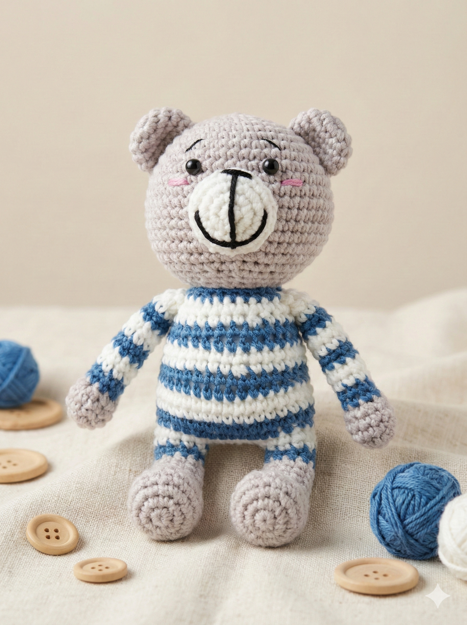 정성껏 손뜨개로 만든 곰인형입니다. 당신과 소중한 사람을 위한 특별한 친구가 되어줄 거예요.